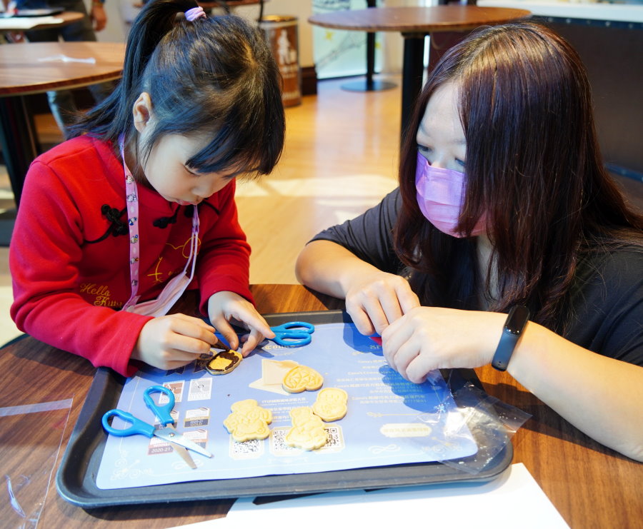 ▼只見小口妹很認真地在畫她的餅乾,畫完之後拿去冰箱冰個5~10分鐘即可取出包裝;等待的時間還可以先彩繪外盒,就是一盒專屬自己的巧克力餅乾啦!