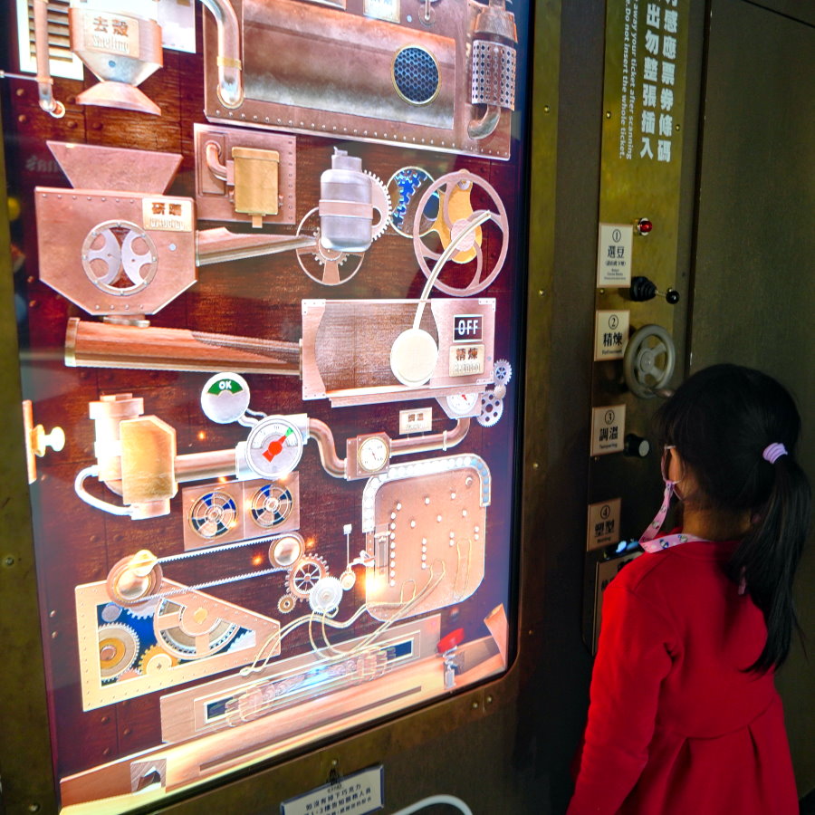 ▼另外一區可可知識互動牆也很促咪,不僅可以了解可可的歷史,用手觸碰螢幕圖示就會亮燈,超活潑又有變化!